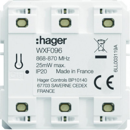 Marque: HagerRéférence: WXF096EAN: 3250618504064Emballage: 1Description: Poussoir gallery 6 touches
