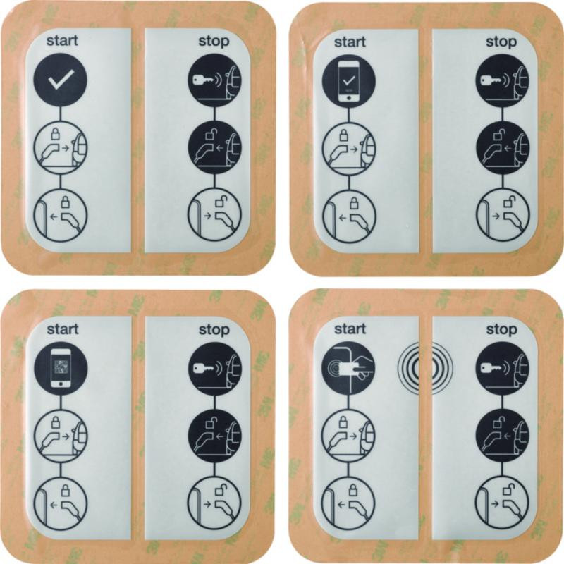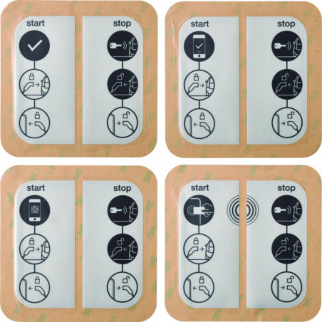 Marque: HagerRéférence: XEVA310EAN: 4012740990134Emballage: 1Description: Set stickers ""mode d'emploi"" (libre / RFID / QR / Smartphone)