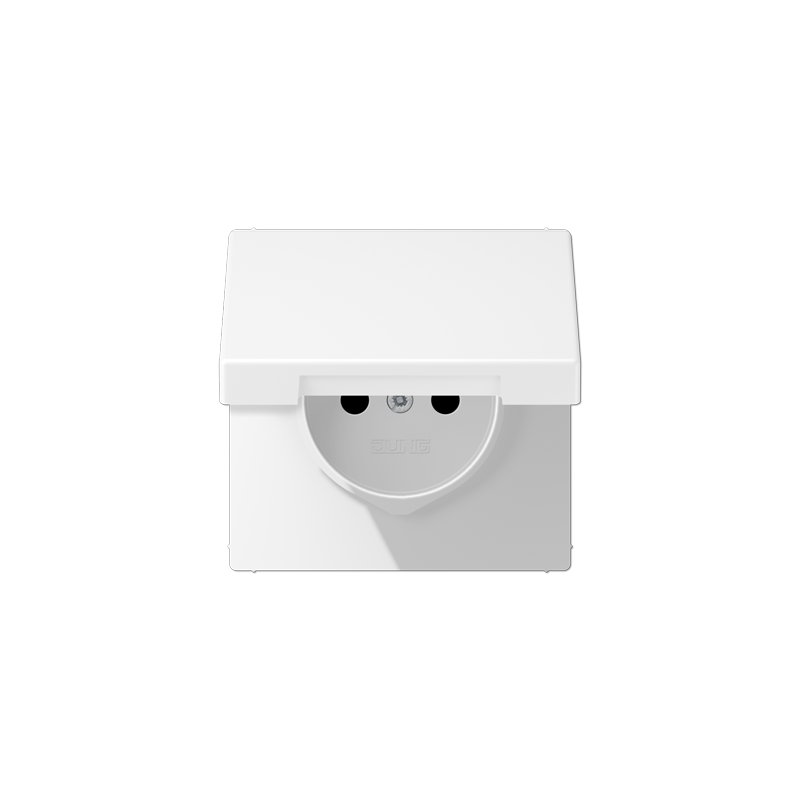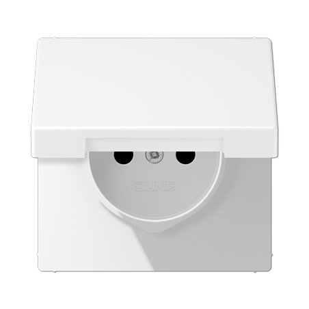 ENJOLIVEUR POUR PRISE AVEC COUVERCLE A CHARNIERE (AVEC RESSORT DE RAPPEL)POUR MECANISME PRISE, SYSTEME FRANCAIS ET BELGE, ART. N?. : 1520 ..F EINS, 1521 ..F EINSAVEC OBTURATEURS (SAFETY PLUS)MATERIAU: DUROPLASTIQUE LAQUE MATCOULEUR: BLANC NEIGE MAT