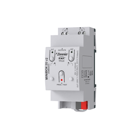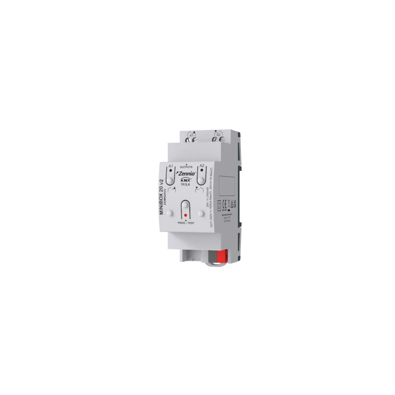 Description: 2 sorties 16 A charge CSorties individuelles ou canal de voletKNX SecureCommande manuelle et LED d'étatPossibilité de connecter différentes phasesMinuteries, fonctions de verrouillage et d'alarmeTemps de fonctionnement et compteur de commutationScènes et synchronisation des scènesFonctions logiquesRail DIN 2 modules