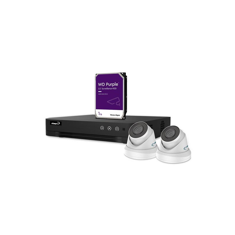 KIT VIDEOSURVEILLANCE IP - ENREGISTREUR NVR 4 CANAUX - 2 x CAMERA DOME IP BLANCHE - 1 To HD - CABLES