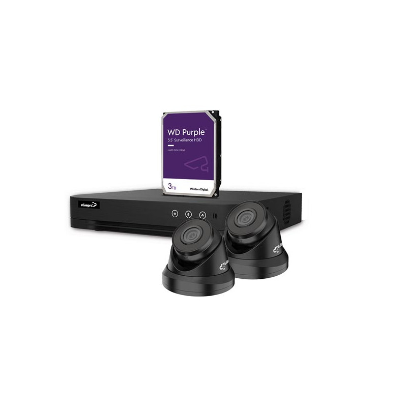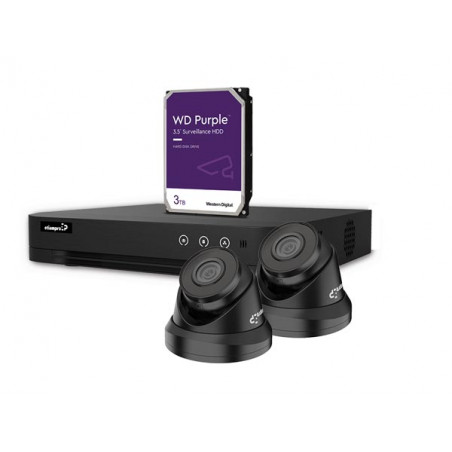 KIT VIDEOSURVEILLANCE IP 4 MP - ENREGISTREUR NVR 4 CANAUX - 2 x CAMERA DOME IP NOIRE - 3 To HD - CABLES