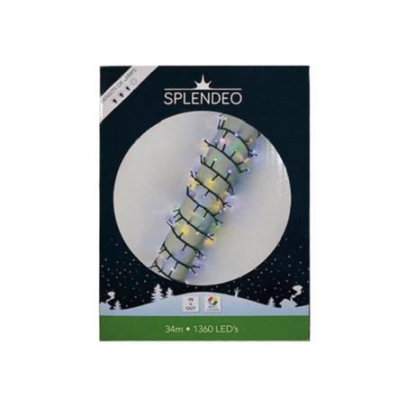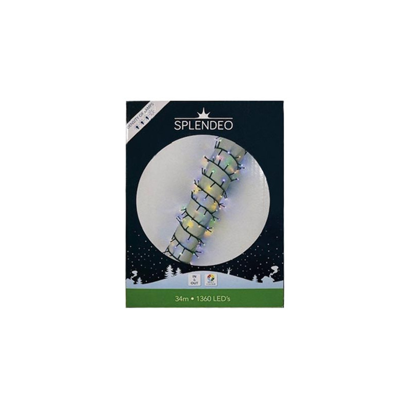 High density lightchain - 1360 LED - multicolore - cable vert - 34 m - cable de raccordement de 3 m - transformateur
