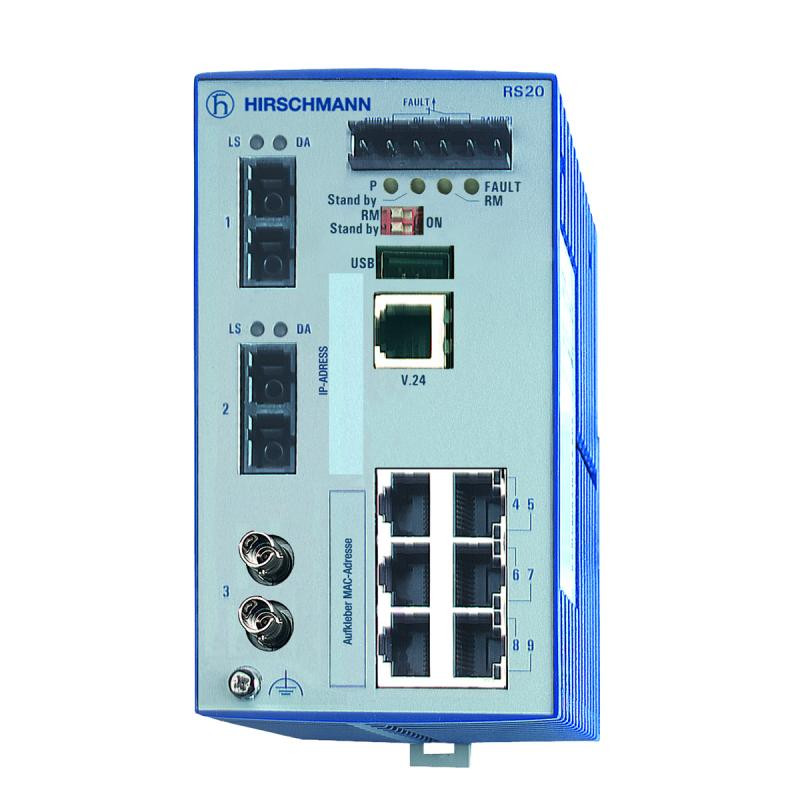 RS20-0900NNM4TDAEHH est un switch Fast Ethernet rail géré avec refroidissement passif (sans ventilateur).Dispose de 3x 100BASE-FX multimode ST uplink - 6x10/100BASE-TX RJ45,-40-+70°C,pas de standard supplémentairs et un logiciel amélioré de layer 2