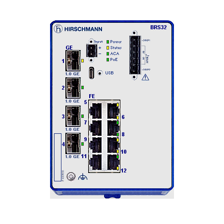 Gigabit/Fast Ethernet DIN Rail switch 4x SFP - 8x RJ45 met PoE+