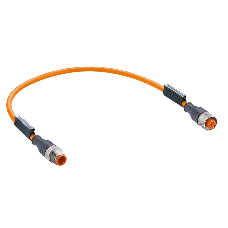 Jeu de câbles PUR moulés - connecteur droit M12 mâle à 4 pôles - connecteur droit M12 femelle à 4 pôles, 15 m, 240 V/4 A, -25 à 80 °C, IP 67