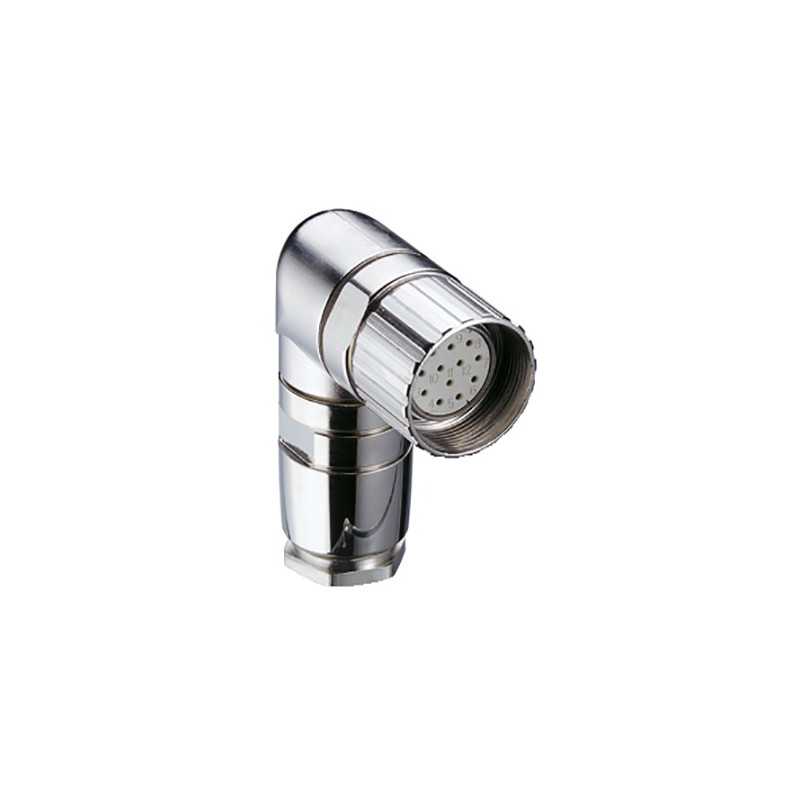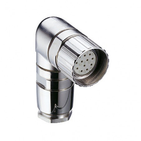 Connecteur M23 femelle coudé à 12 pôles, raccord à vis, 10 à 14 mm (PG 13.5), convient pour 120 V AC/DC 8 A, -25 à 80 °C, IP 67