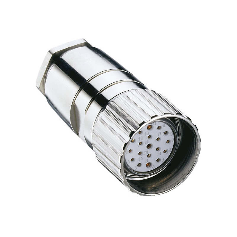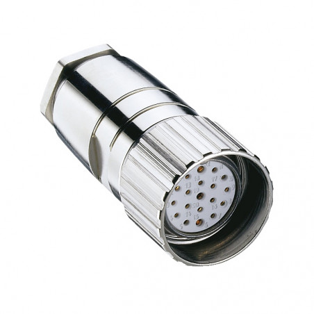 Connecteur femelle M23 droit à 19 pôles, raccord à vis, 10 à 14 mm/max. 16 x 1 mm² - 3 x 1,5 mm² (PG 13.5), convient pour 120 V AC/DC 16x8 A + 3x10 A, -25 à 80 °C, IP 67