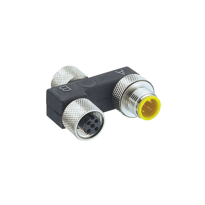 Le 0906 UTP 101 est un répartiteur en T M12 avec des connecteurs femelle vers mâle et femelle. Tous ont 5 pôles. Ce répartiteur est particulièrement adapté aux modules CANopen et DeviceNet avec des connexions de bus M12.