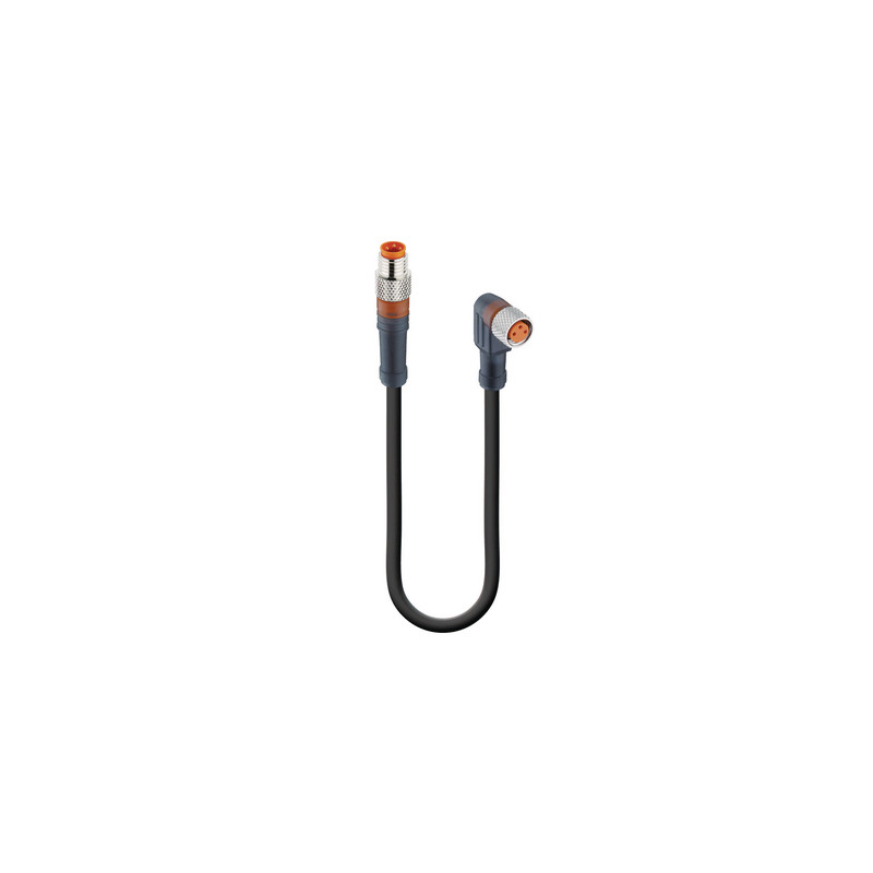 Jeu de câbles en PUR surmoulés - connecteur M8 mâle coudé à 3 pôles - connecteur M8 femelle droit à 3 pôles, 15m, 60 V/4 A, -25 à 80 °C, IP 67