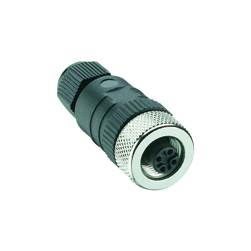 Connecteur droit M12 à 4 pôles femelles, raccordement vissé blindé, 3,0 à 6,5 mm (PG 7), convient pour 60V/4A, IP 67, boîtier plastique (PBT), -25 à +95 °C