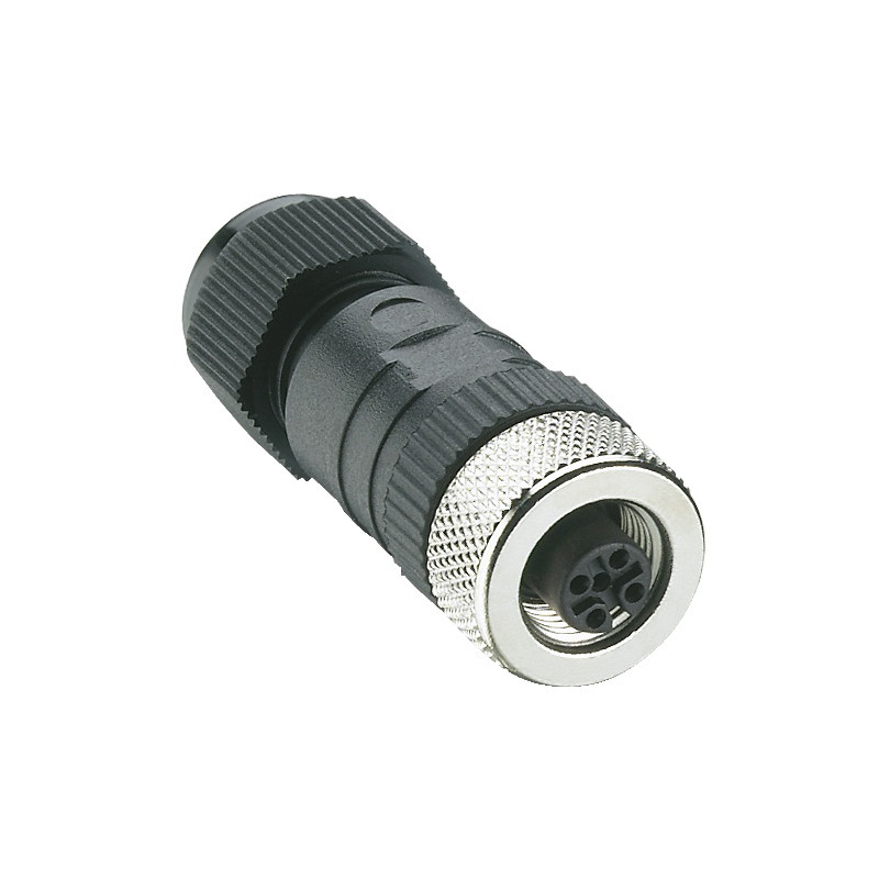 Connecteur droit M12 femelle à 5 pôles, raccordement vissé blindé, 4,0 à 8,0 mm (PG 9), convient pour 60V/4A, IP 67, boîtier plastique (PBT), -25 à +95 °C