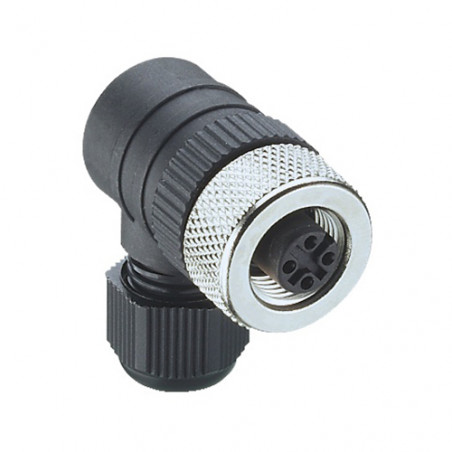Connecteur femelle M12 à 5 pôles coudé, raccordement vissé blindé, 3,0 à 6,5 mm (PG 7), convient pour 60V/4A, IP 67, boîtier plastique (PBT), -25 à +95 °C
