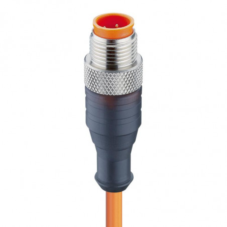 Câble PVC avec connecteur mâle M12 droit moulé à 4 pôles, connexion par vis, 2m, 240V/4 A, 5 à 90 °C, IP 67