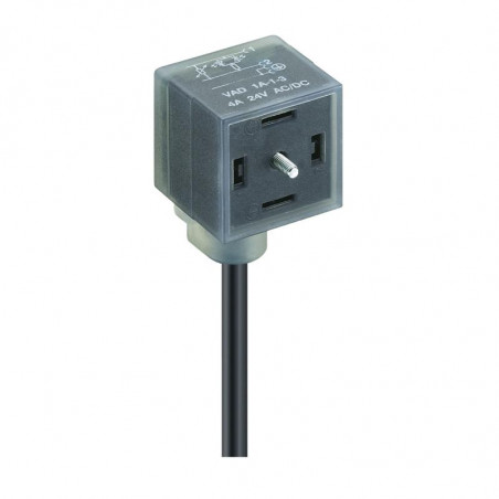Connecteur de vanne femelle 2+PE coudé noire de type A avec LED et varistor - Connecteur mâle M12 à 5 pôles, 24 V/4 A, -25 à 80 °C, IP 65. Norme DIN EN 175 301-803-C