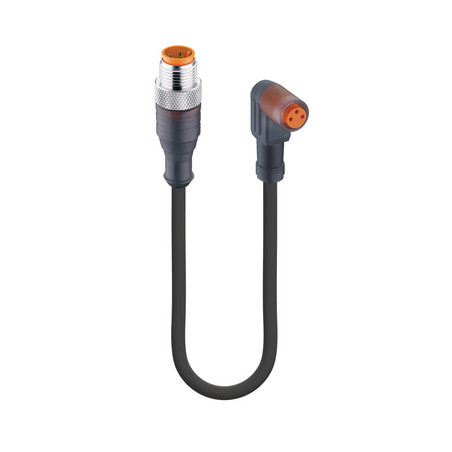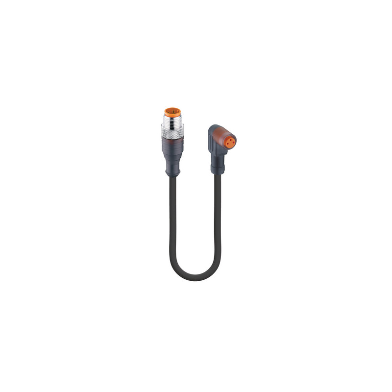 Jeu de câbles en PVC moulé - Connecteur M12 mâle doit 3 pôles - Connecteur M8 femellecoudé 3 pôles à encliqueter avec 2xLED (PNP) indication, 2m, 10-30 V/4 A, -25 à 80 °C, IP 65