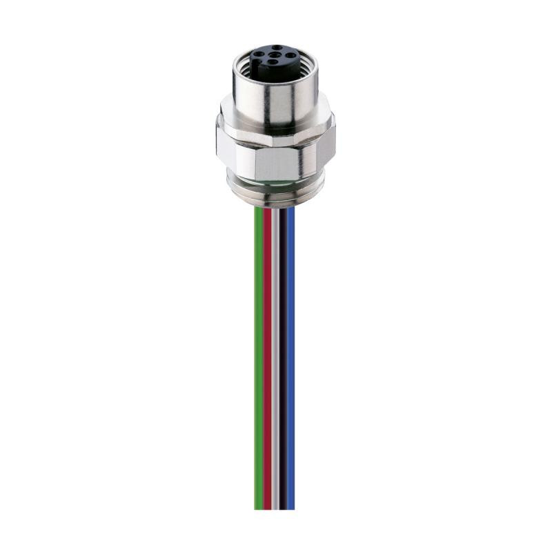 M12 female inbouwstekker M16x1,5 met 0,5 m AWG 22
