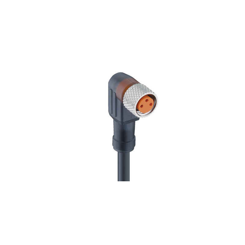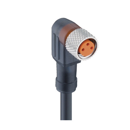 Câble PUR avec connecteur femelle coudé M8 moulé à 3 pôles, raccord fileté, 10m, 60 V/4 A, -40 à 90 °C, IP 67