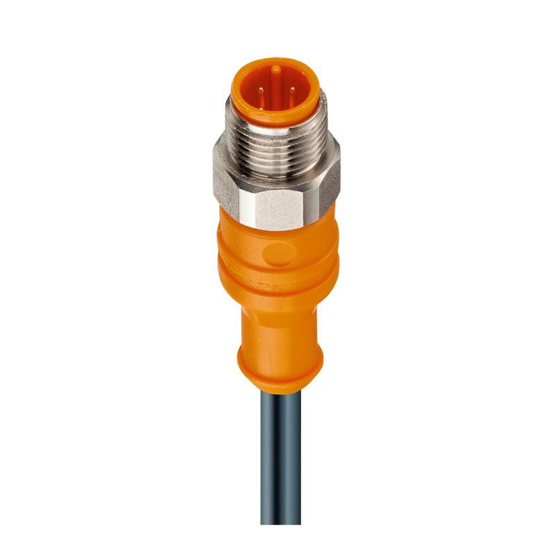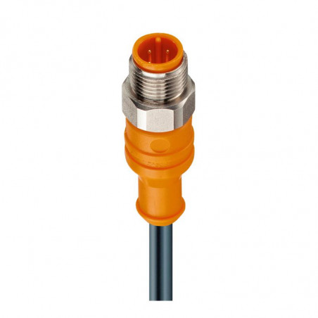 Câble PVC avec connecteur mâle M12 droit moulé à 4 pôles, connexion par vis, avec vis hexagonale en acier inoxydable, 5m, 240V/4 A, -25 à 70 °C, IP 69K. Spécialement développé pour l'industrie alimentaire (Food - Beverage)