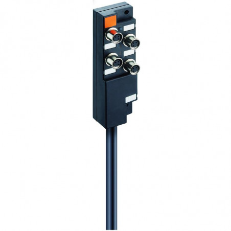 Câble PUR 10m avec module Acteur/Capteur avec 4 connexions avec indication par LED et connexions M8 femelle 3 broches ; Résistant à l'huile, aux vibrations, -15 °C à 80 °C, IP 67. Supporte 1 signal par connexion.