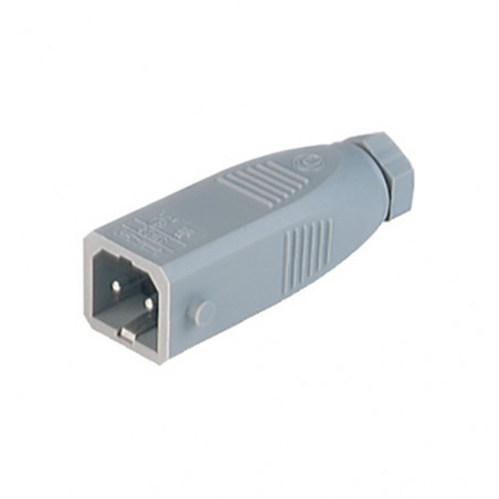 Fiche mâle gris sans décharge de traction, 2+PE, 4,0 - 6,5mm/max. 1,5mm² (PG7), 250 V DC/AC;10 A DC/16 A AC, -30 à 90 °C, IP 54. Verrouillage possible avec STASI 2 (art. n° 732044000).