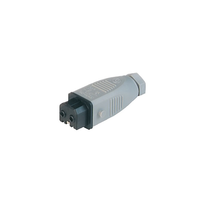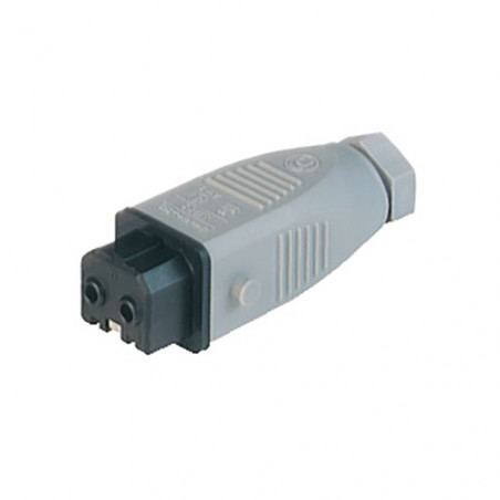 Fiche femelle grise sans décharge de traction, 2+PE, 4,0 - 6,5mm/max. 1,5mm² (PG7), 250 V DC/AC;10 A DC/16 A AC, -30 à 90 °C, IP 54. Verrouillage possible avec STASI 2 (art. n° 732044000).