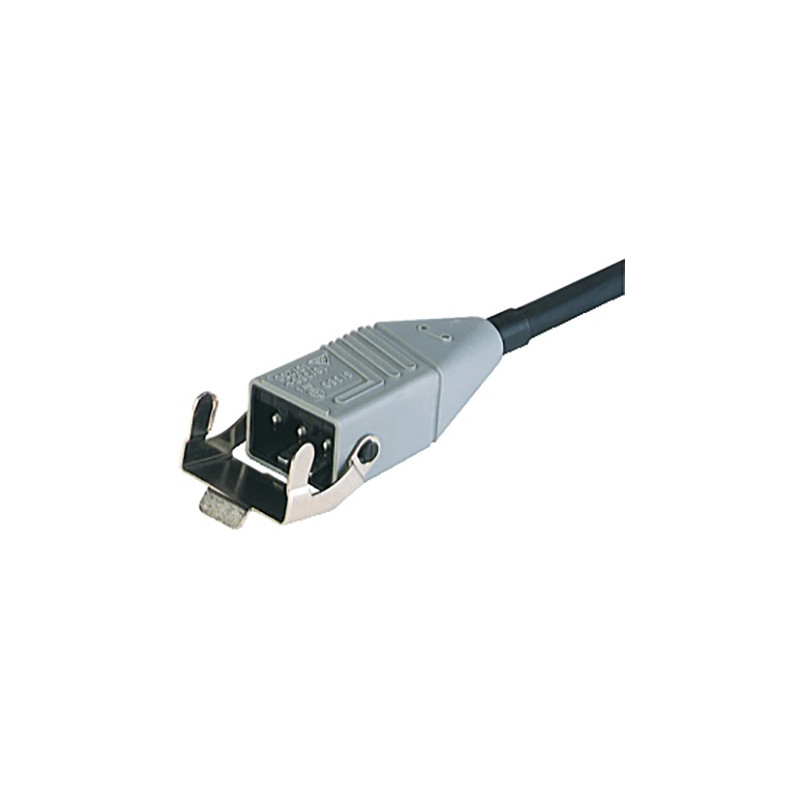 Câble noir 4x0,75 mm² avec connecteur mâle droit gris moulé à 3 pôles (3+PE) avec support de verrouillage, 3m, 250 VDC/ 400 VAC;10 A, -25 à 60 °C, IP 54.