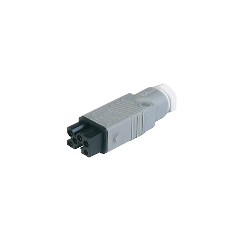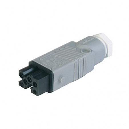 Fiche femelle grise avec décharge de traction, 5+PE, 8,0 - 10,0mm/max. 1mm² (PG11), 250 V DC/ 400 V AC;10 A DC/6 A AC, -30 à 90 °C, IP 54. Verrouillage possible avec STASI 3 (art. n° 732045001).