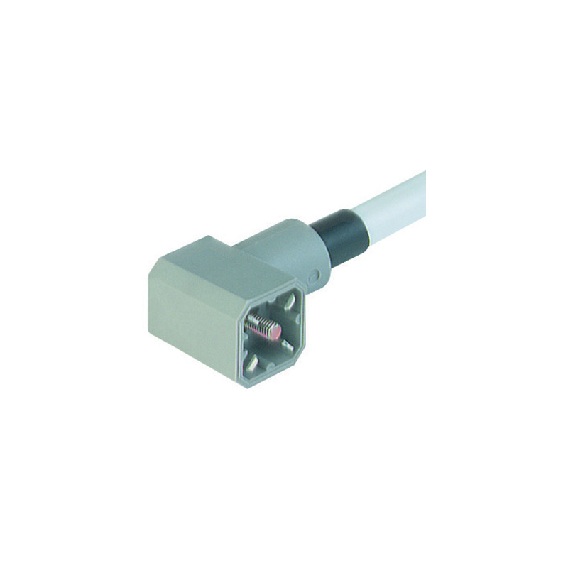 Câble PVC avec mini-connecteur de vanne mâle coudé 3+PE avec vis centrale, 2m, 230 V/10 A, -40 à 70 °C, IP 65.