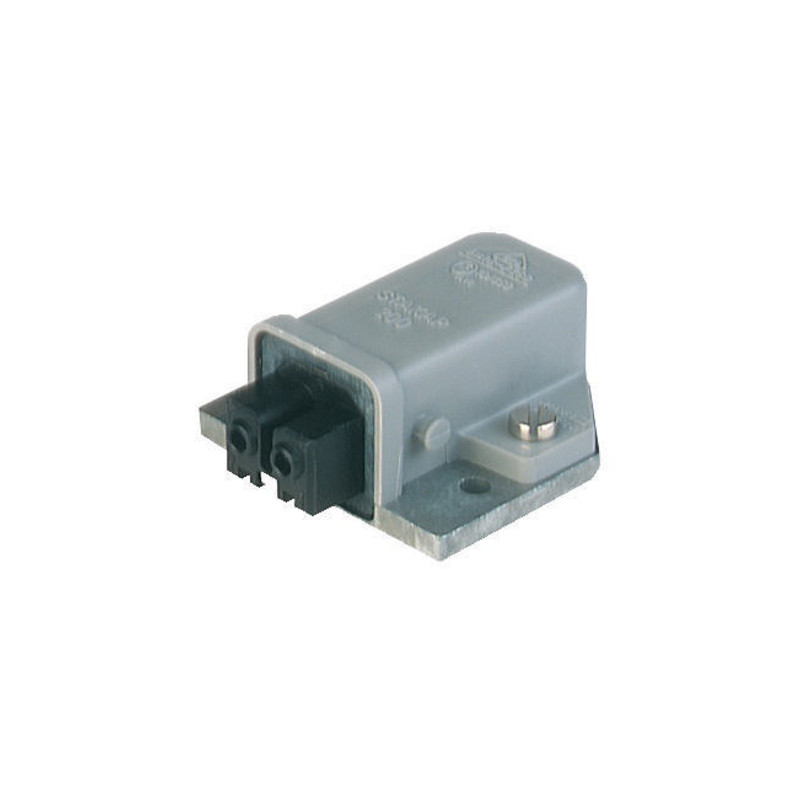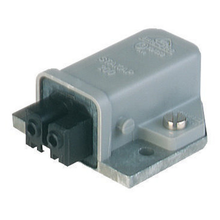 Fiche femelle grise pour montage en surface avec plaque de base moulée et étiquette de codage, 2+PE, raccord à vis, max. 1,5mm², 250 V DC/AC ; 10 A DC/16 A AC, -30 à 90 °C, IP 54.