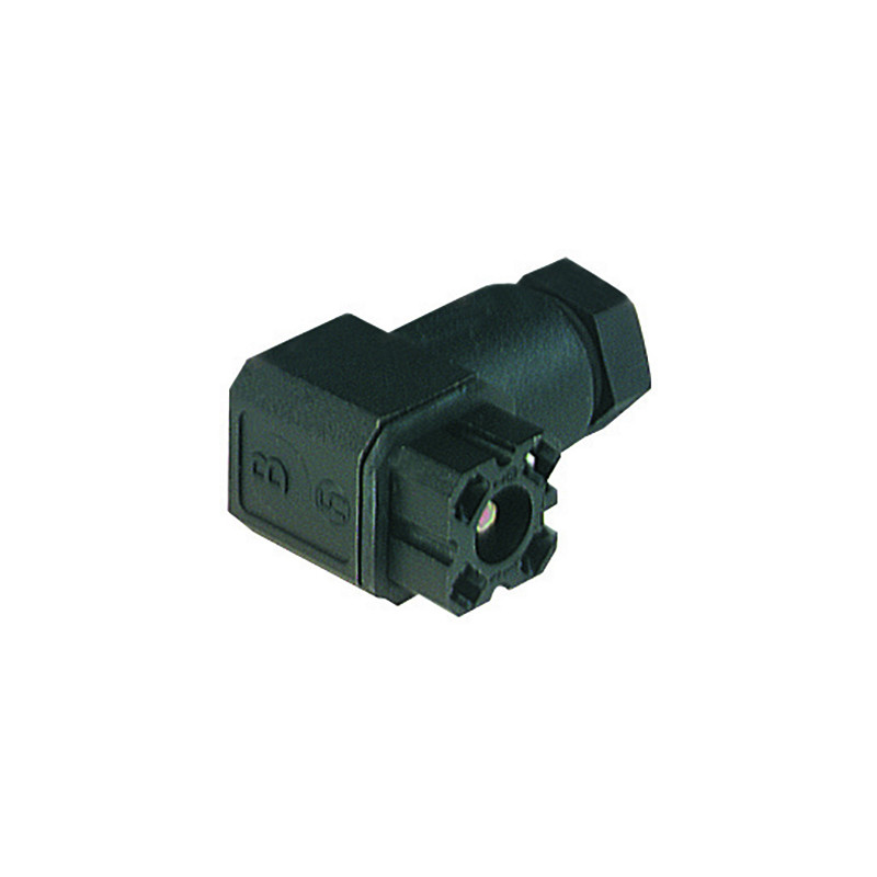 Mini-connecteur de vanne femelle 3+PE coudé noir avec vis centrale, 3,5 - 6,0 mm/max. 0,50mm²(PG7), raccordement à souder, 250 V/6 A, -40 à 90 °C, IP 65.
