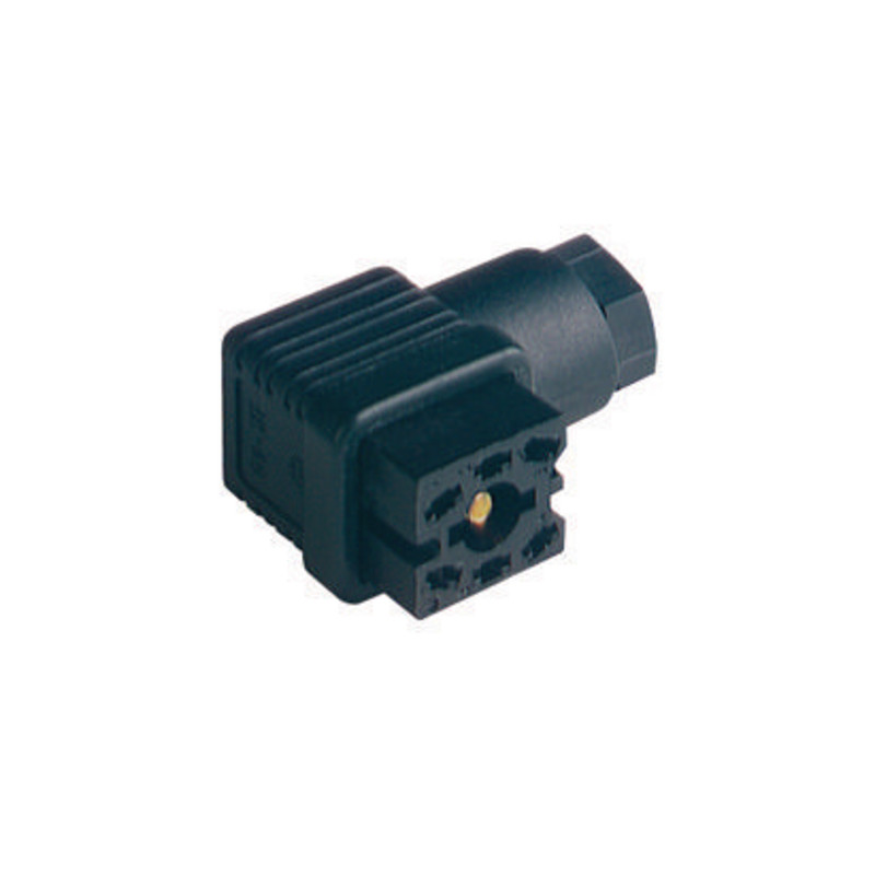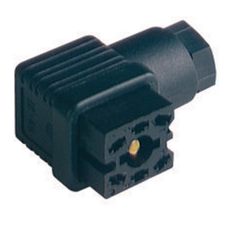 Mini-connecteur de vanne femelle 5+PE coudé noir avec vis centrale, 5,0 - 7,0 mm/0,14 - 0,50mm²(PG7), raccord à souder, 250 V/6 A, -40 à 90 °C, IP 65.