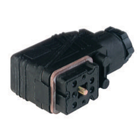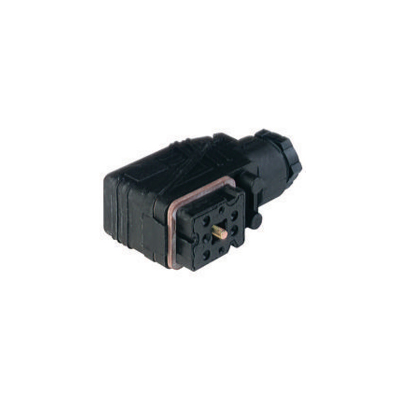 Mini-connecteur de vanne femelle 6+PE coudé noir avec vis centrale, 4,0 - 10,0 mm/0,25 - 1,00mm²(PG11), 230 V AC/DC ; 10 A AC/6 A DC, -40 à 90 °C, IP 65.