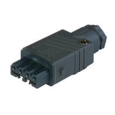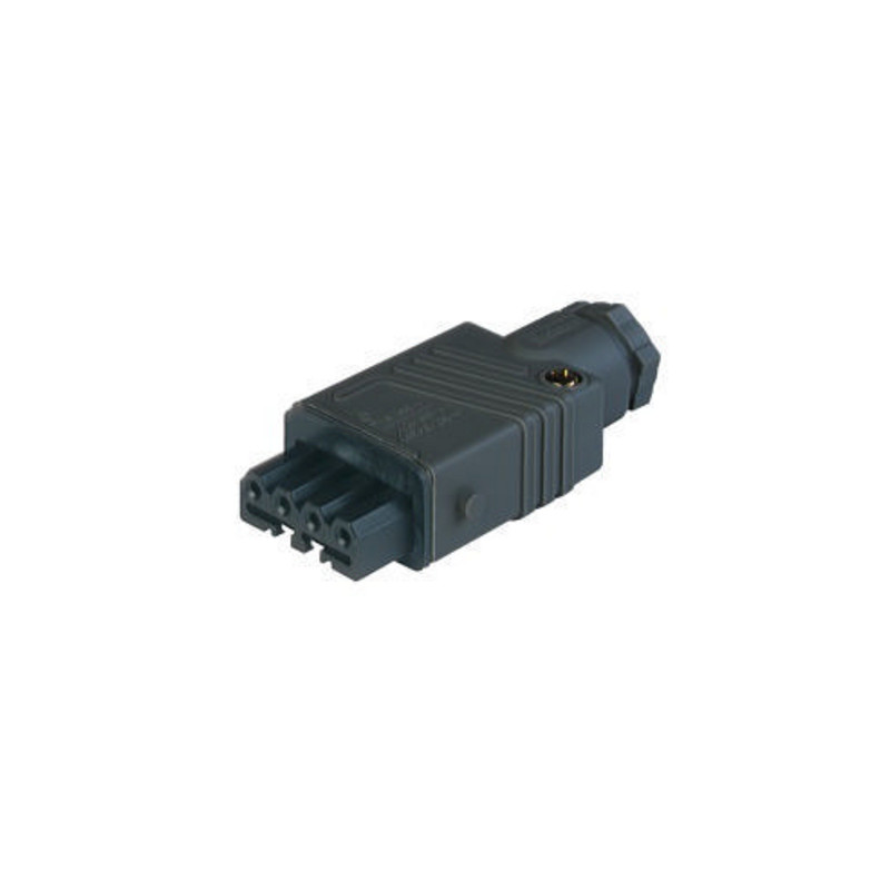 Fiche femelle noire avec décharge de traction, 4+PE, 6,0 - 10,0mm/max. 1,5mm² (PG11), 250 V DC/ 400 V AC;10 A DC/10 A AC, -30 à 90 °C, IP 54. Verrouillage possible avec STASI 4 (art. n° 733449001).