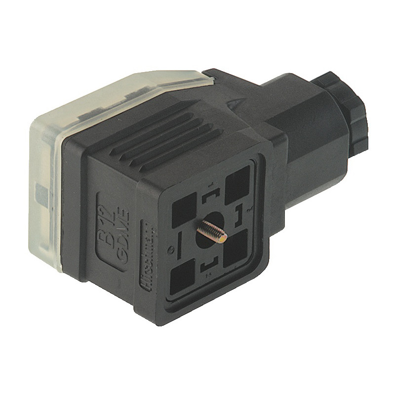 Connecteur de vanne femelle 2+PE gris/transparent coudé de type A (extensible par LED), vis centrale M3x40, 6 - 9mm/0,25 - 1,5mm² ; PG11, 250 V DC/ 400 V AC;16 A, -40 à 125 °C, IP 65. Norme DIN EN 175 301-803-A