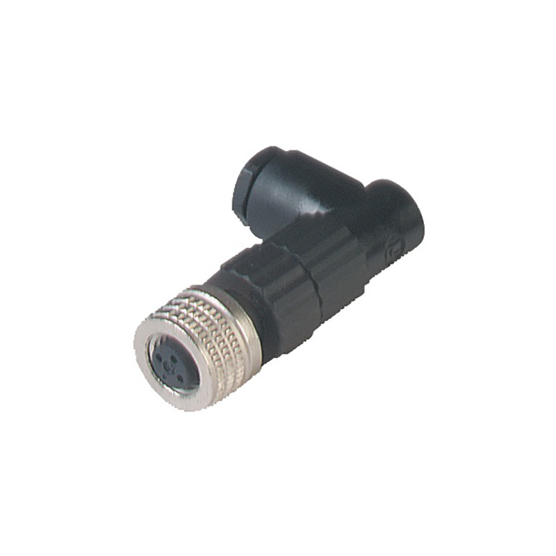 Connecteur femelle M8 coudé à 3 pôles, raccordement vissé blindé, avec cage de serrage, 4,0 à 5,0 mm/0,14 mm² à 0,34 mm², convient pour 60V/3A, IP 67, boîtier plastique (PA), -25 à +70 °C