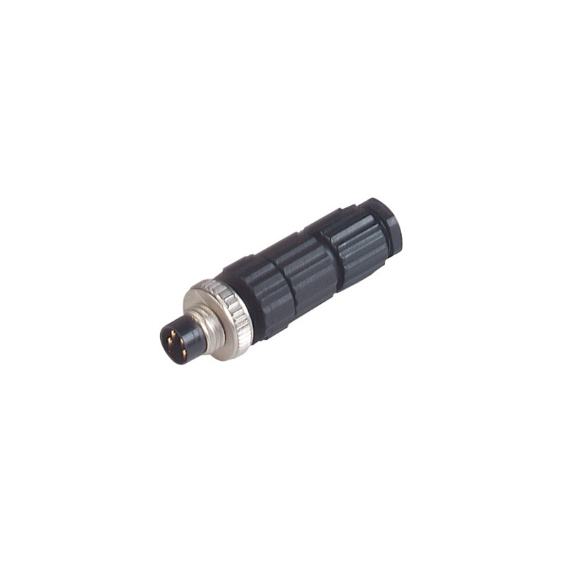 Connecteur M8 mâle droit à 4 pôles, raccordement vissé blindé, avec cage de serrage, 4,0 à 5,0 mm/0,14 mm² à 0,34 mm², convient pour 30V/3A, IP 67, boîtier plastique (PA), -25 à +70 °C