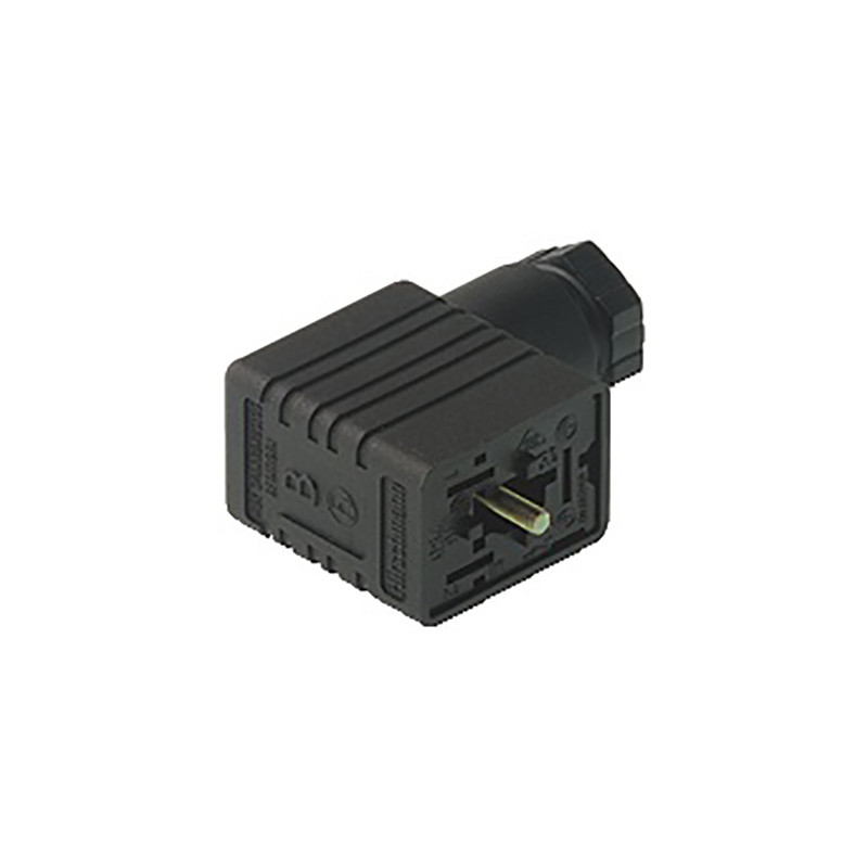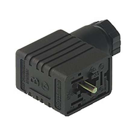 Connecteur de vanne femelle 2+PE coudé noir de type B, vis centrale M3x35, 4,5 - 9,5mm/0,25 - 1,5mm² ; M16, 230 V/16 A, -40 à 125 °C, IP 65. Norme de l'industrie