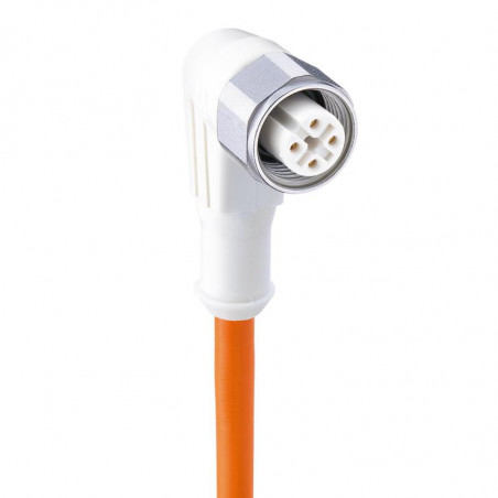 Câble TPE avec connecteur M12 femelle coudé moulé à 4 pôles, connexion par vis, 5m, 240V/4 A, -25 à 90 °C, IP 69K. Série From Wash Down développée pour l'industrie alimentaire (Food - Beverage)