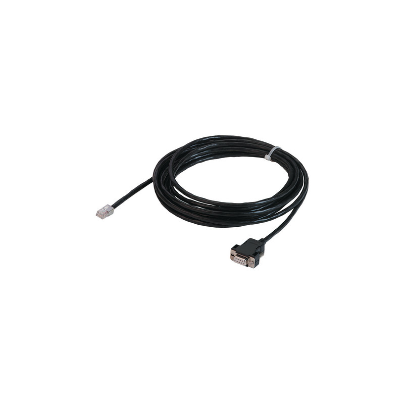 Câble terminal pour la configuration des rails gérés, MICE et MACH via l'interface RS232 du switch en combinaison avec le logiciel du terminal. La longueur du câble est de 5 m et comprend un connecteur RJ 11 et un connecteur Sub-D à 9 broches.