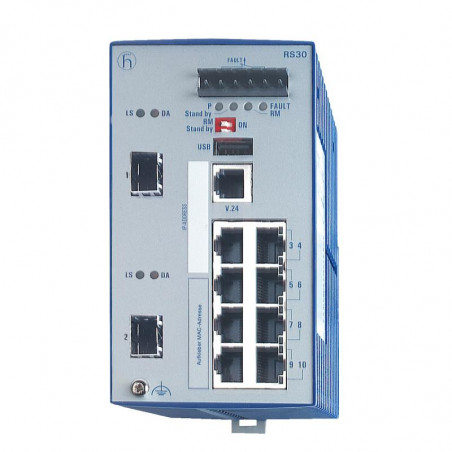 Le RS30-0802O6O6SDAEHH est un switch Gigabit/Fast Ethernet rail géré avec refroidissement passif (sans ventilateur).Dispose de 2x Gigabit SFP uplink - 8x10/100BASE-TX RJ45, 0-60 °C,pas de standards supplémentaires et un logiciel amélioré de layer 2