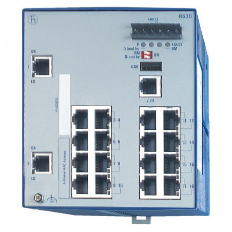 Rail switch 2x Gigabit RJ45 uplink - 16x Fast Ethernet RJ45