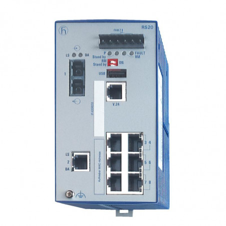 Le RS20-0800M2T1SDAEHH est un switch OpenRail Fast Ethernet géré avec refroidissement passif (sans ventilateur).Il comprend 1x 100BASE-FX multimode SC uplink - 1x 10/100BASE-TX uplink - 6x 10/100BASE-TX RJ45,0-60 °C,logiciel amélioré de layer 2.