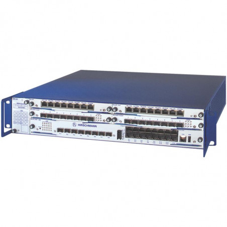 Routeur-backbone industriel, modulaire et géré, avec 48 ports GE (répartis sur 32 ports via des modules média et 16 ports intégrés), 8 ports combo Gigabit (SFP) et logiciel Layer 3 Enhanced. 0 °C à 60 °C, IP20.