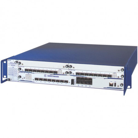 Routeur-backbone industriel, modulaire et géré, avec 24 ports Ethernet Gigabit (répartis sur 16 ports via des modules médias et 8 ports intégrés ou ports SFP combo) et logiciel Layer 2 Professional. 0 °C à 60 °C, IP20.