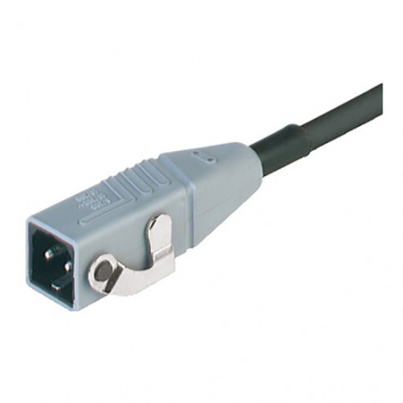 Câble noir 3x0,75 mm² avec connecteur mâle droit gris moulé à 2 pôles (2+PE) avec support de verrouillage, 1m, 250 VDC/ 400 VAC;10 A, -25 à 60 °C, IP 54.