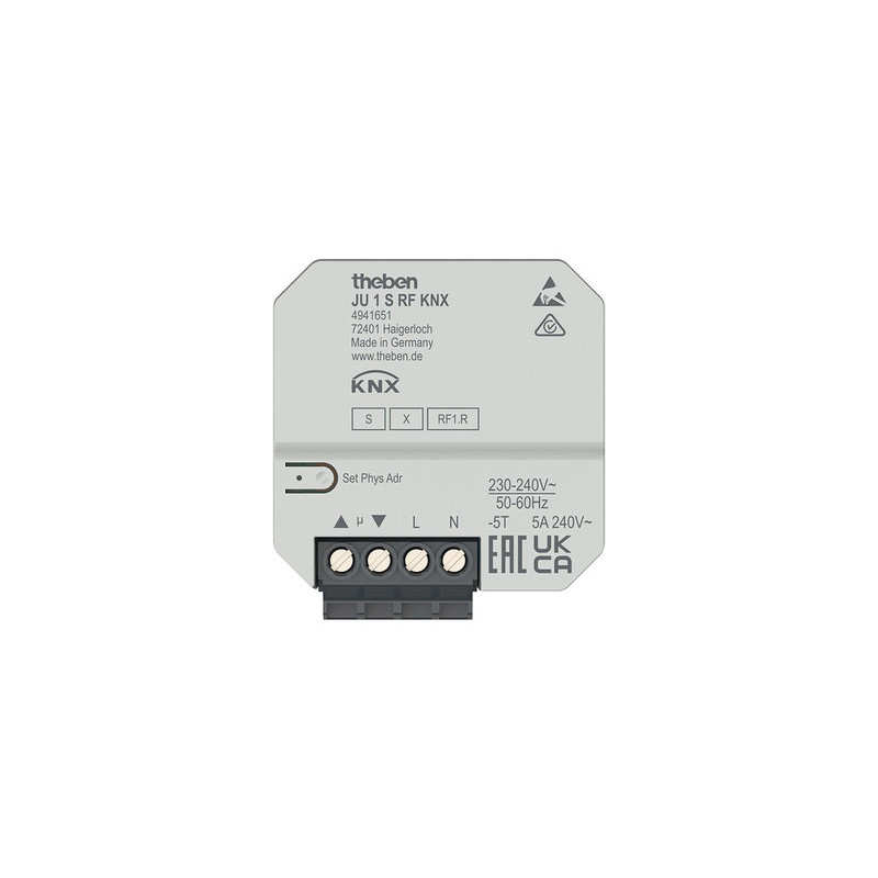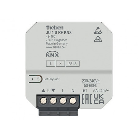 Marque: THEBEN Référence: 4941651 Description: ACTIONNEUR DE STORE RADIO ENCASTRE A 1 CANAL 5 A, KNX RF, DATA SECURE Conditionnement: 1 EAN: 4003468491799