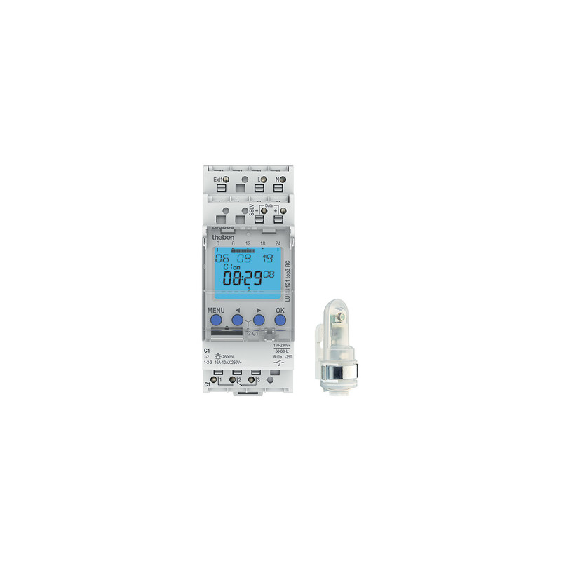 INTERRUPTEUR CREPUSCULAIRE DIG.+ HORLOGE CELL. MUR. 230V 50-60HZ 1-99KLUX 1CO 16A