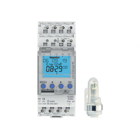 INTERRUPTEUR CREPUSCULAIRE + HORLOGE CELL. MUR. 230V 50-60HZ 1-99KLUX 2CO 16A