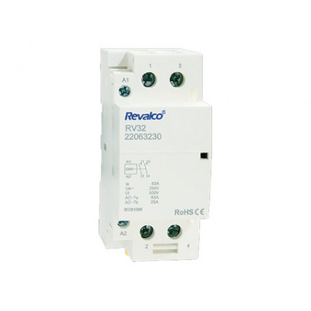 Marque: REVALCORéférence: RV3220263230Description: CONTACTEUR DE PUISSANCE 63A 2P 2M 2NF BOBINE 230VACConditionnement: 1EAN: 8033032211426